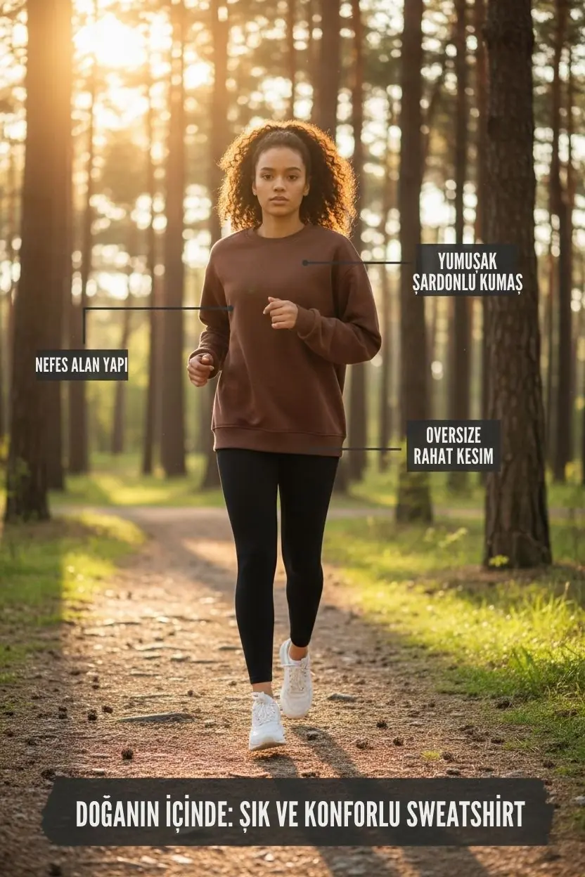 Kadın Basic Pamuklu İçi Polarlı Bisiklet Yaka Sweatshirt