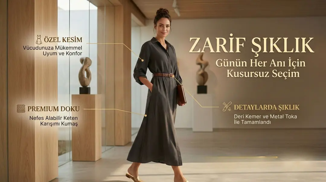 • Kadın Modal Uzun Gömlek Elbise