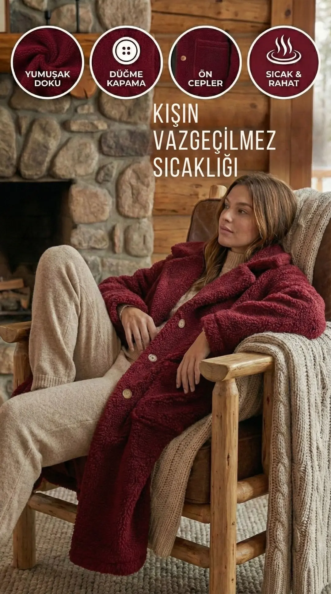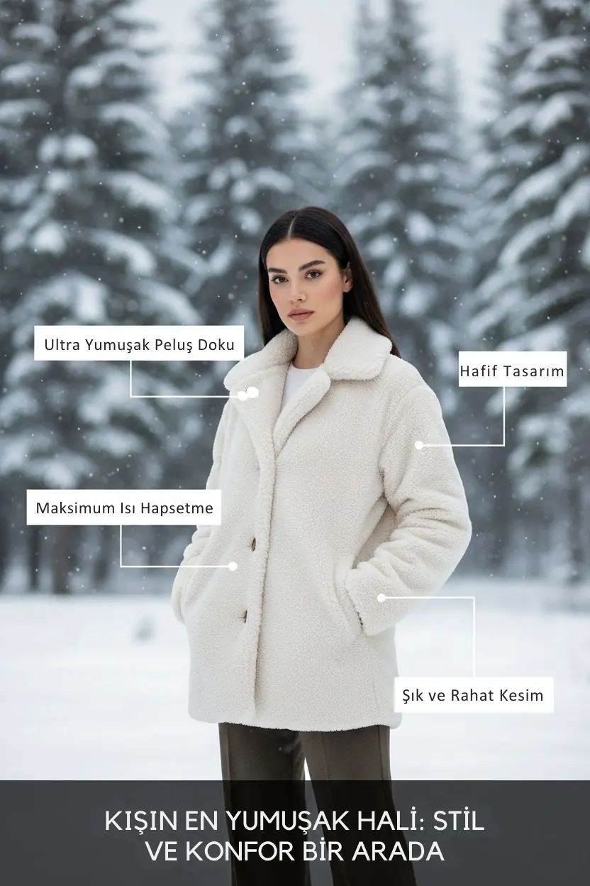 Kadın Peluş Düğmeli Cepli Teddy Gömlek Yaka Sıcak Tutucu Yumuşak Kışlık Ceket