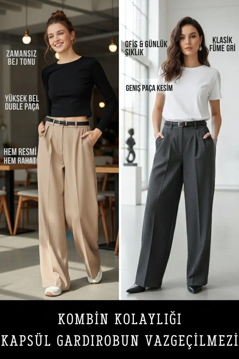Kadın Pilili Cepli Kemerli Palazzo Pantolon