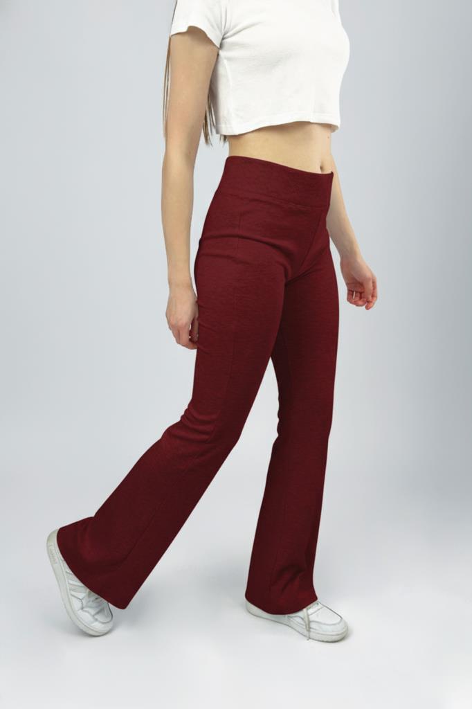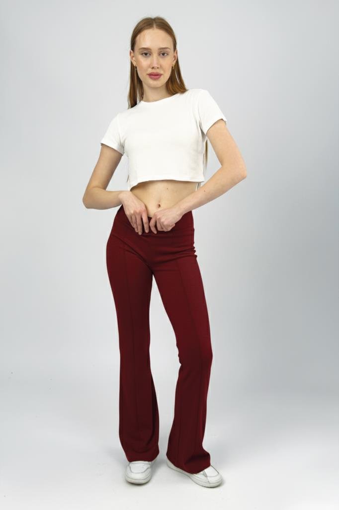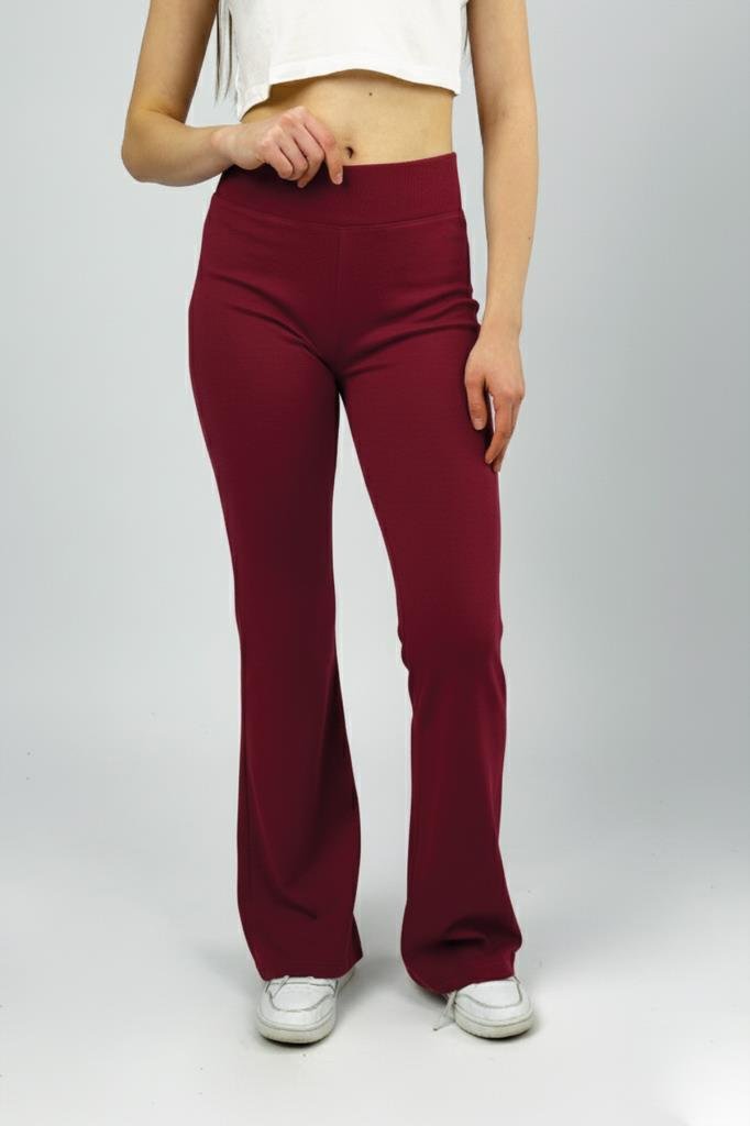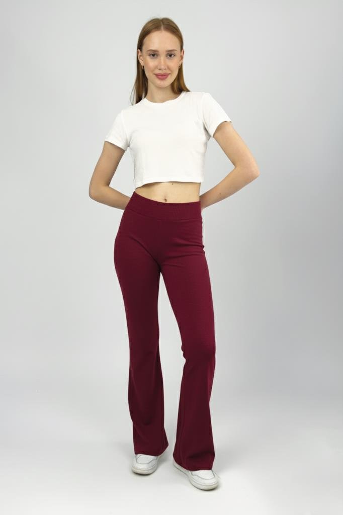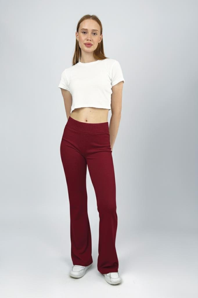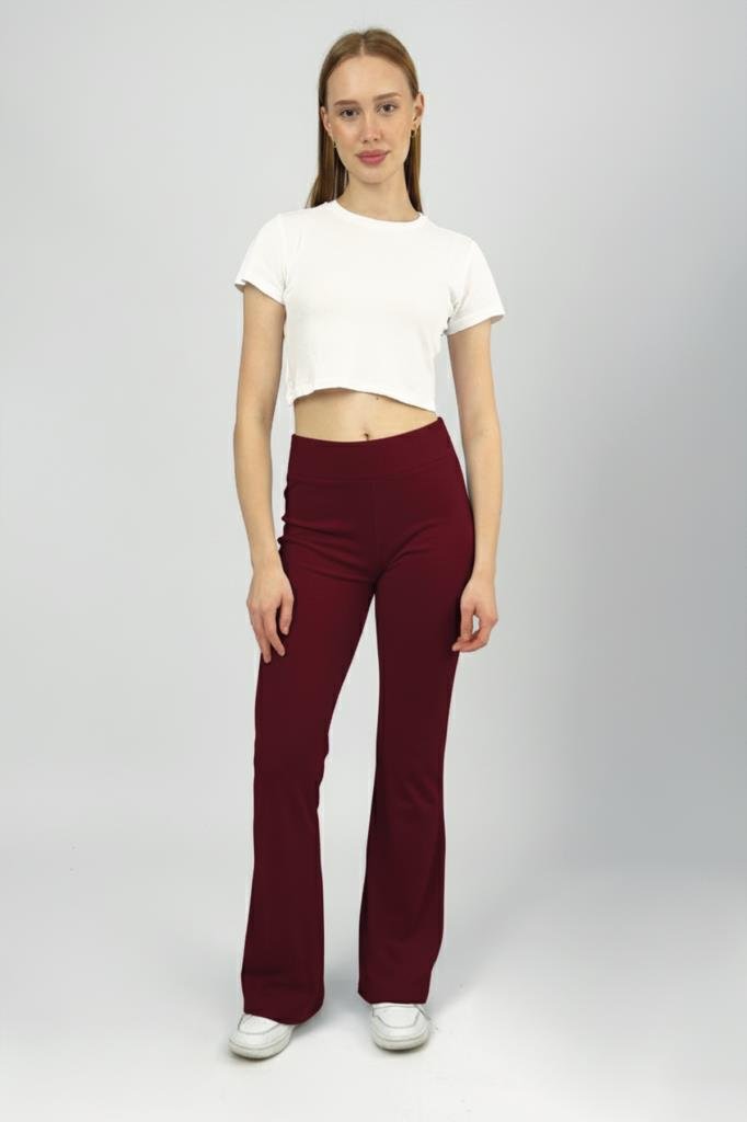 Kadın Yüksek Bel Likralı Esnek İspanyol Paça Pantolon Tayt BORDO - M Kadın Yüksek Bel Likralı Esnek İspanyol Paça Pantolon Tayt EGN3574BrdoM