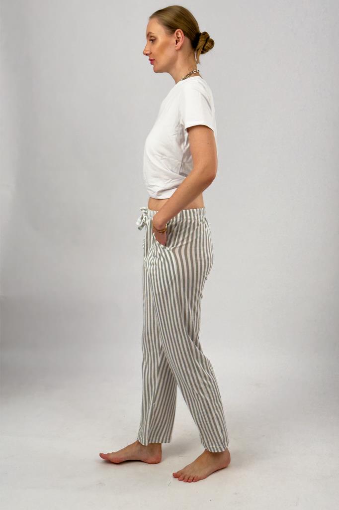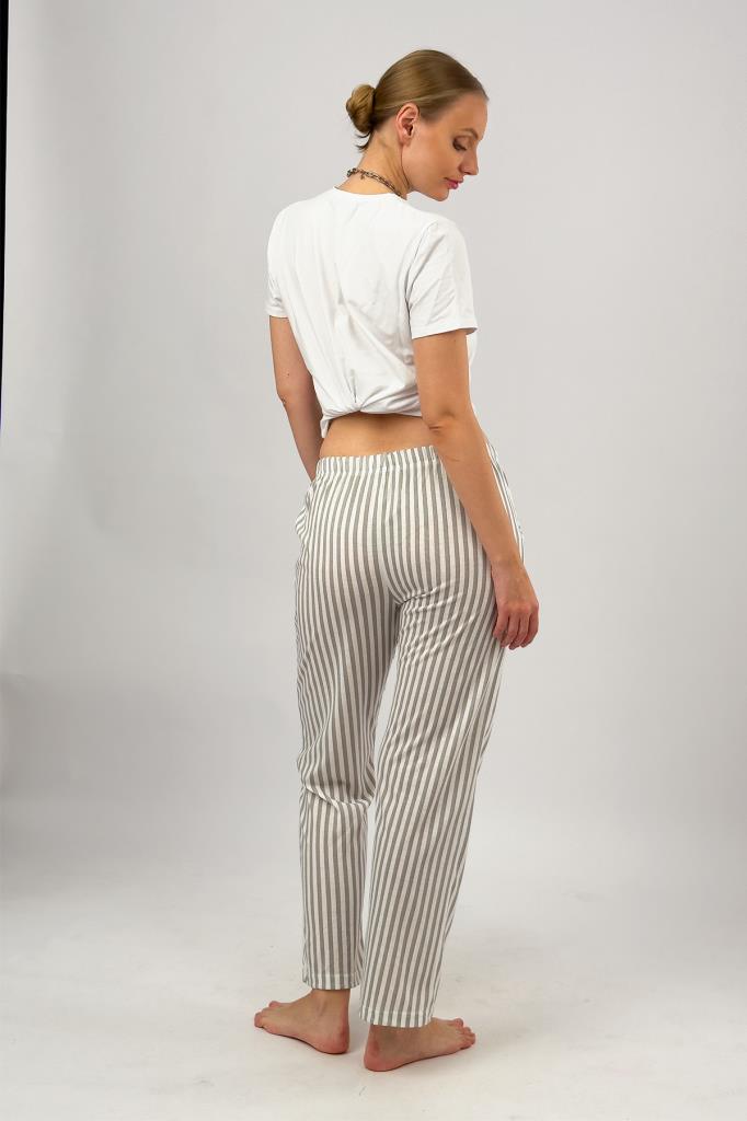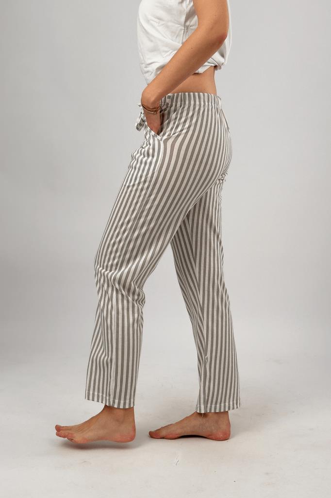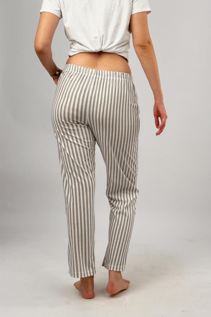 Kadın Cepli Pamuklu Lastikli Bel Kurdeleli Desenli Pijama Altı Gri Çizgili - XL