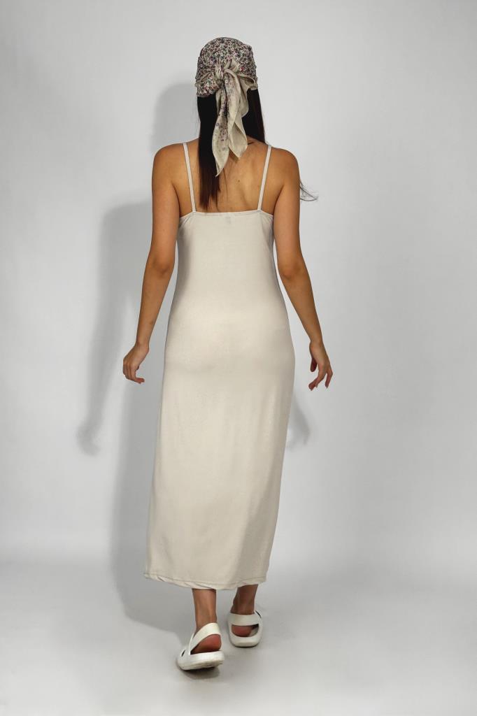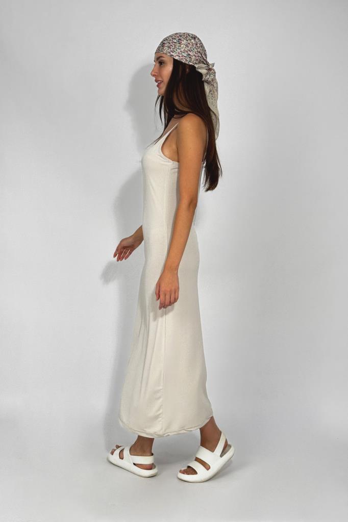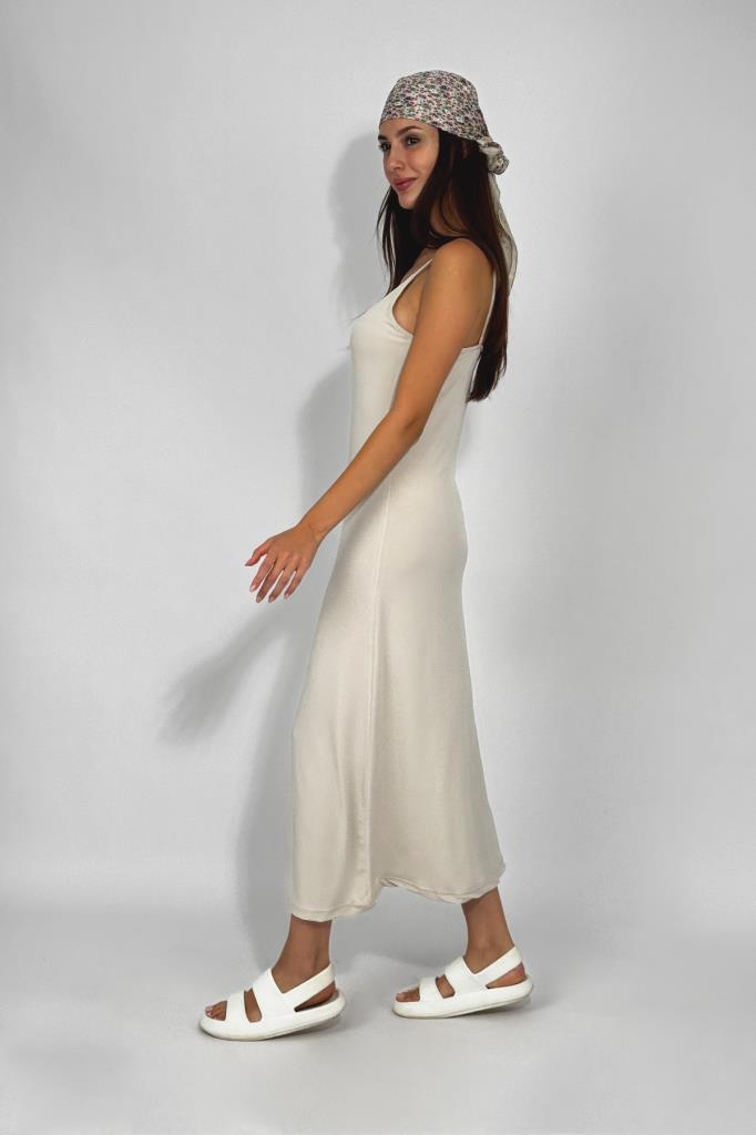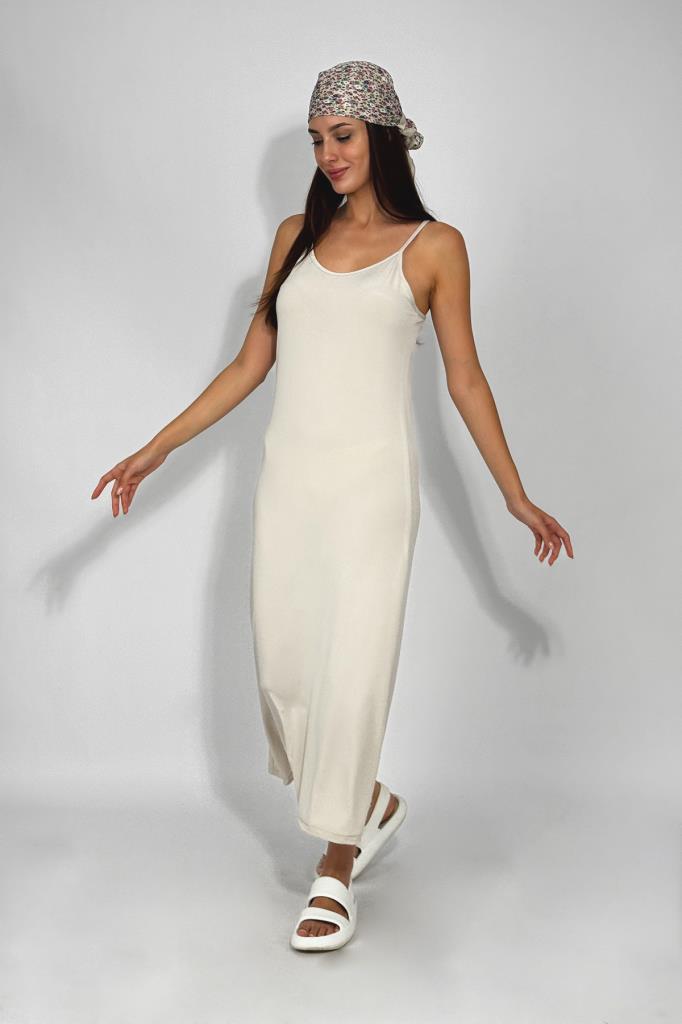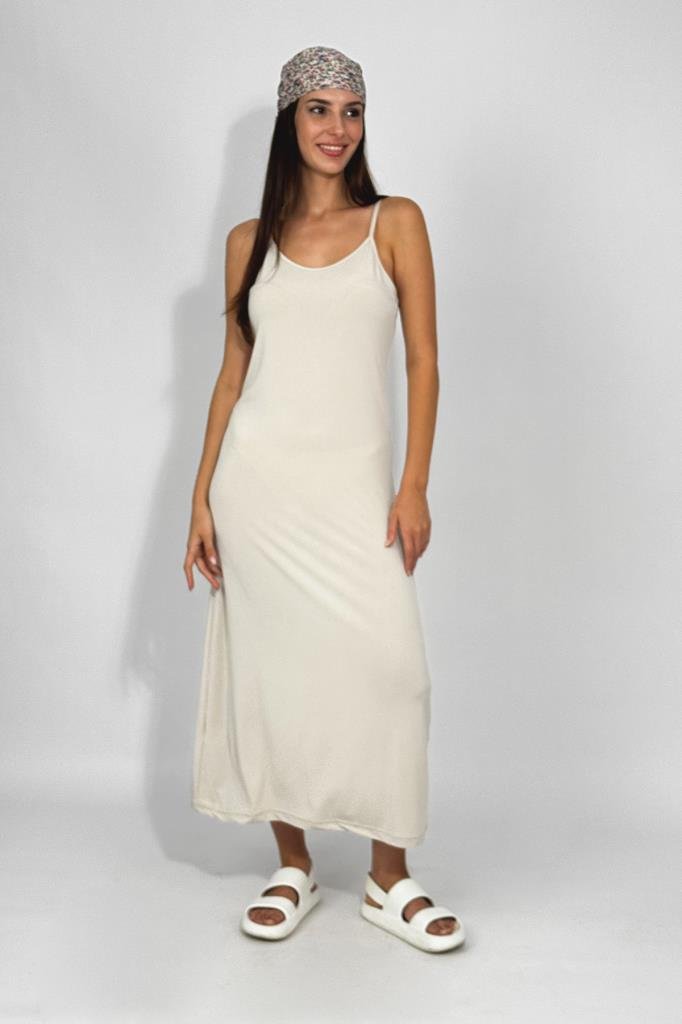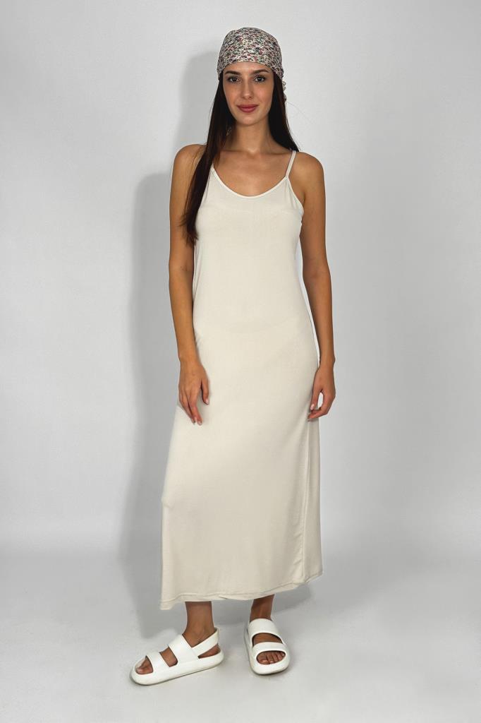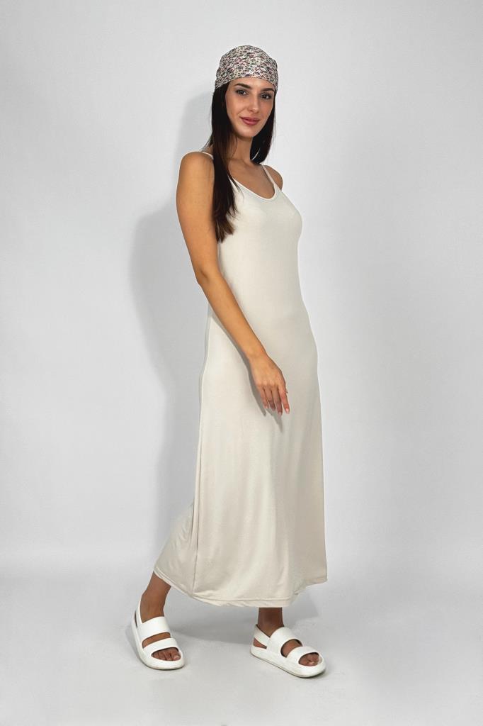 - Kadın Maxi Sandy Kumaş İp Askılı Düz Renk Fitted/Vücuda Oturan Dar Esnek Rahat Saran Uzun Elbise