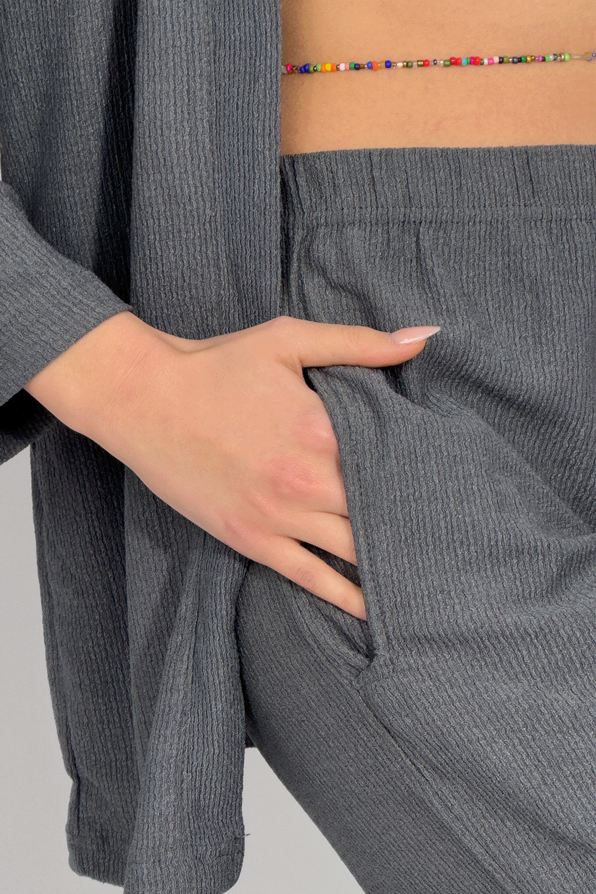Kadın Pantolonlu Alt Üst İkili Kimono Takım Rahat Kalıp GRİ - S Kadın Pantolonlu Alt Üst İkili Kimono Takım Rahat Kalıp GriSBrmckTakım