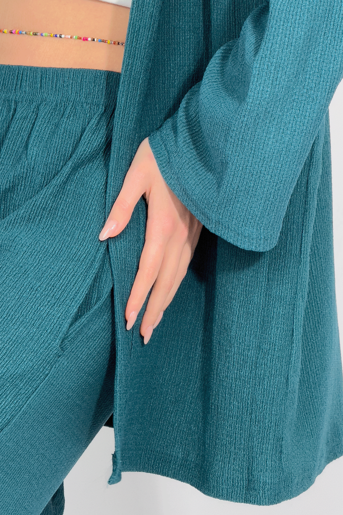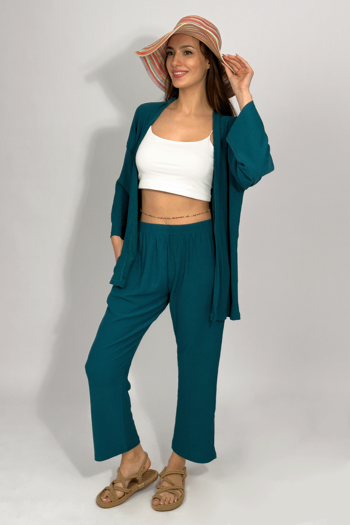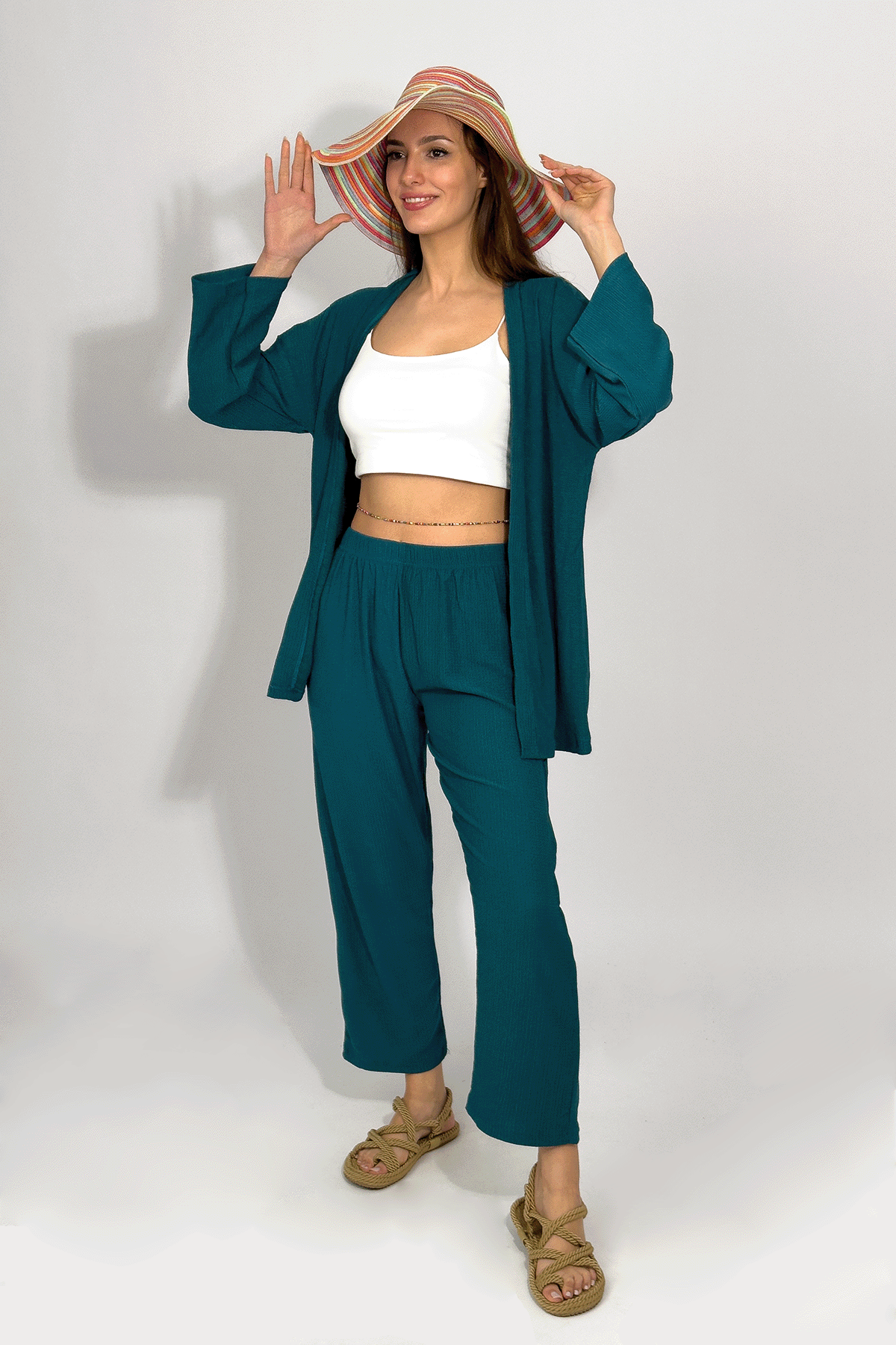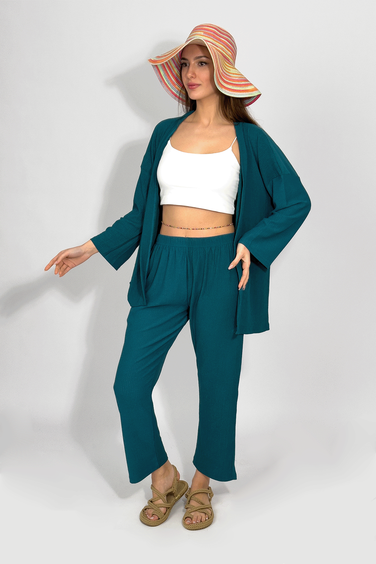 Kadın Pantolonlu Alt Üst İkili Kimono Takım Rahat Kalıp Petrol Mavi - 2XL Kadın Pantolonlu Alt Üst İkili Kimono Takım Rahat Kalıp Petrol2XLBrmckTkm