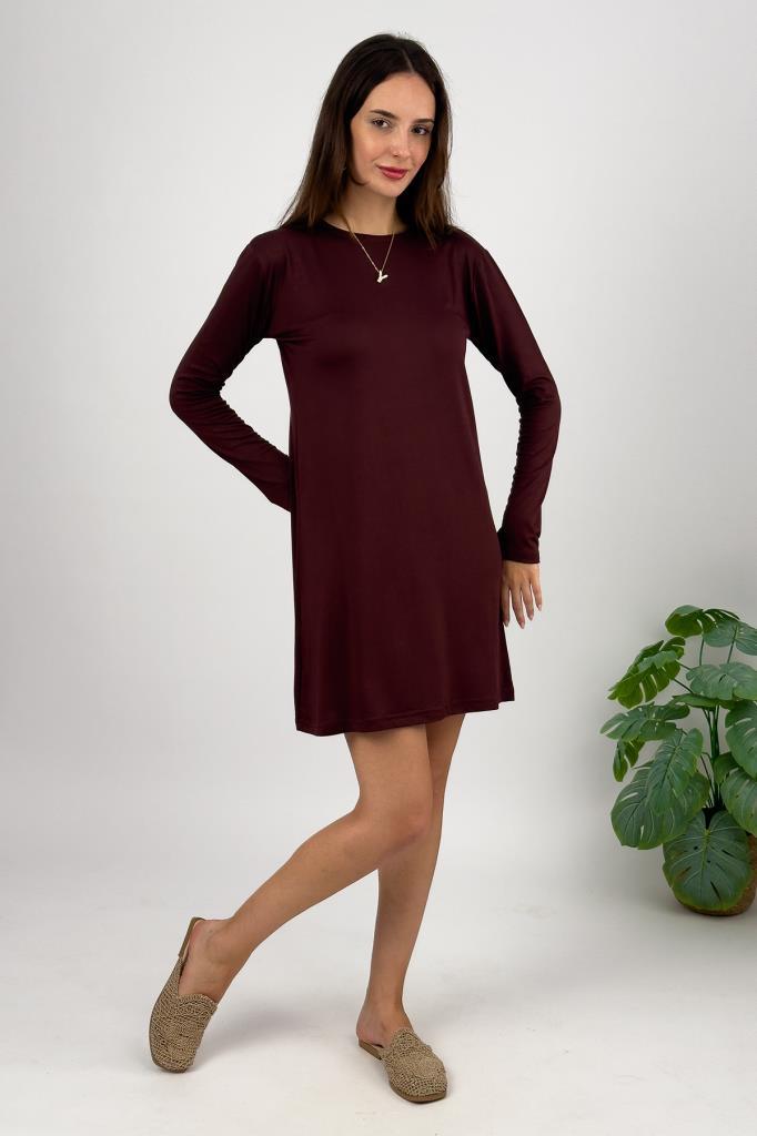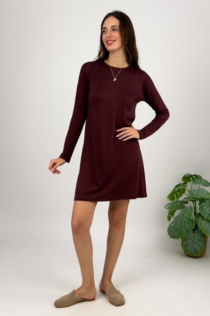 Kadın Uzun Kol Bisiklet Yaka Penye Tunik Içlik Dış Giyim Kahve - 2XL/3XL  Kadın Uzun Kol Bisiklet Yaka Penye Tunik Içlik Dış Giyim 2XL3XLkahveUznKlElbise
