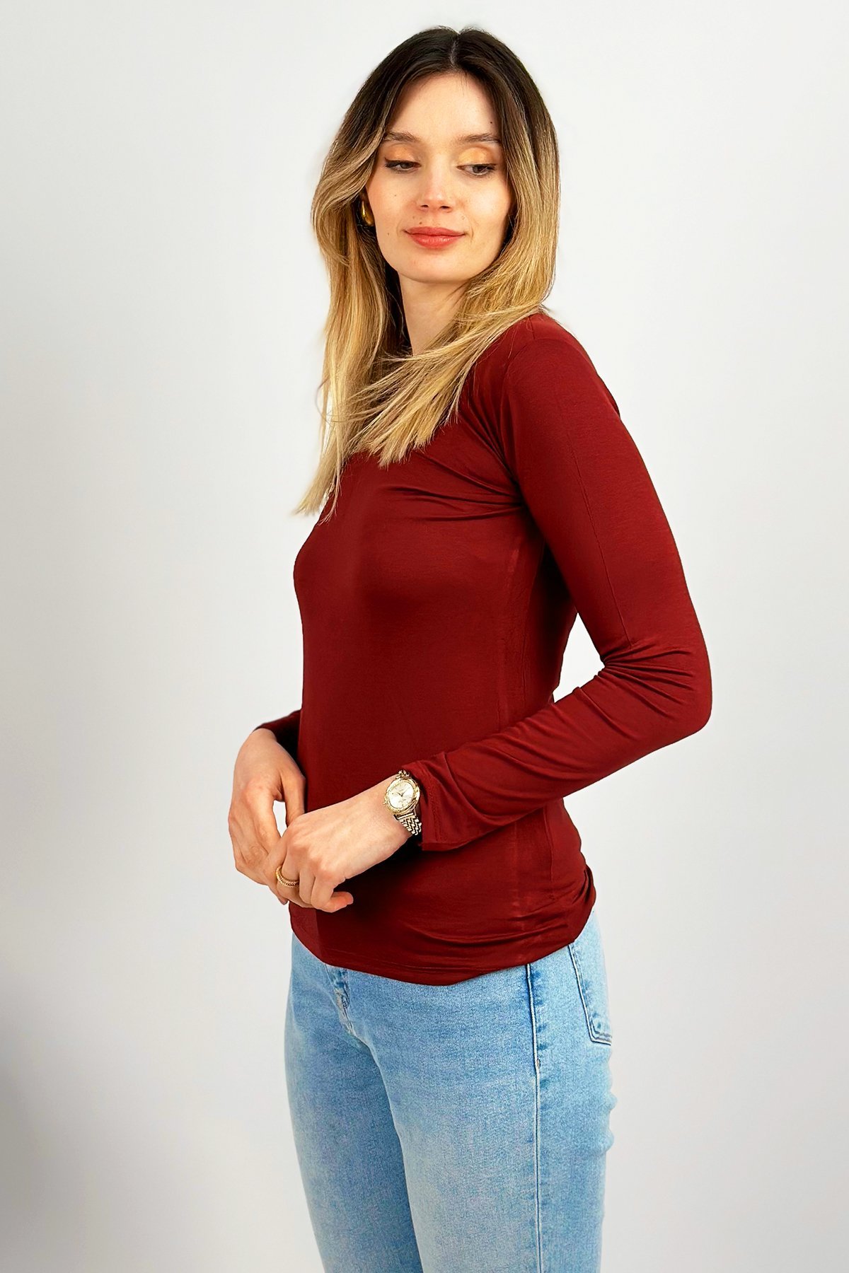 Kadın Uzun Kollu Bisiklet Yaka Body 1 Adet BORDO - L/XL