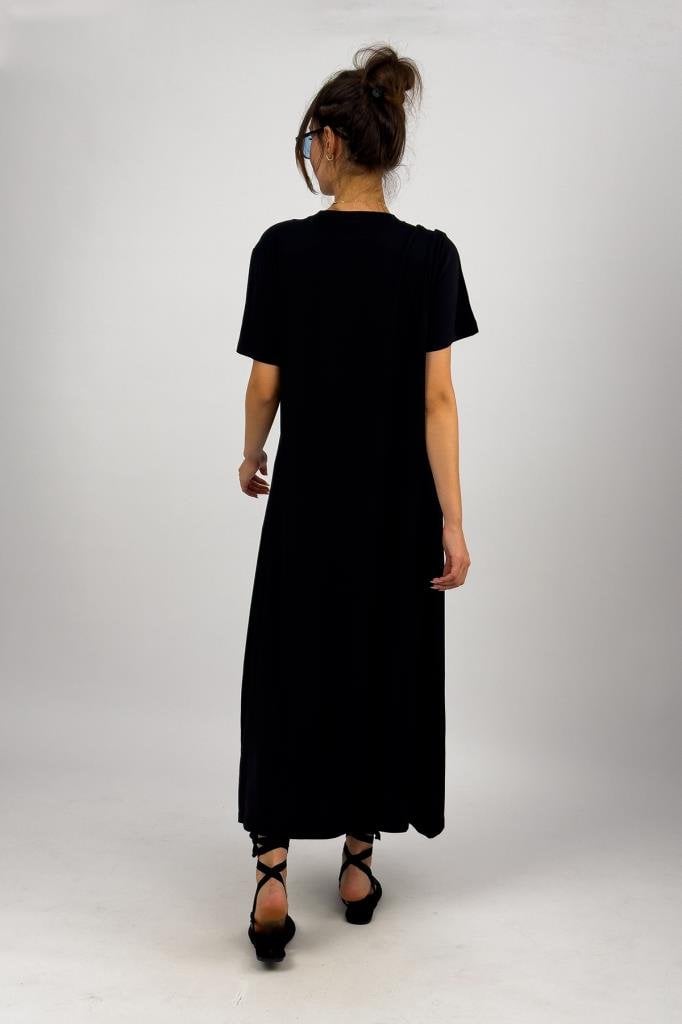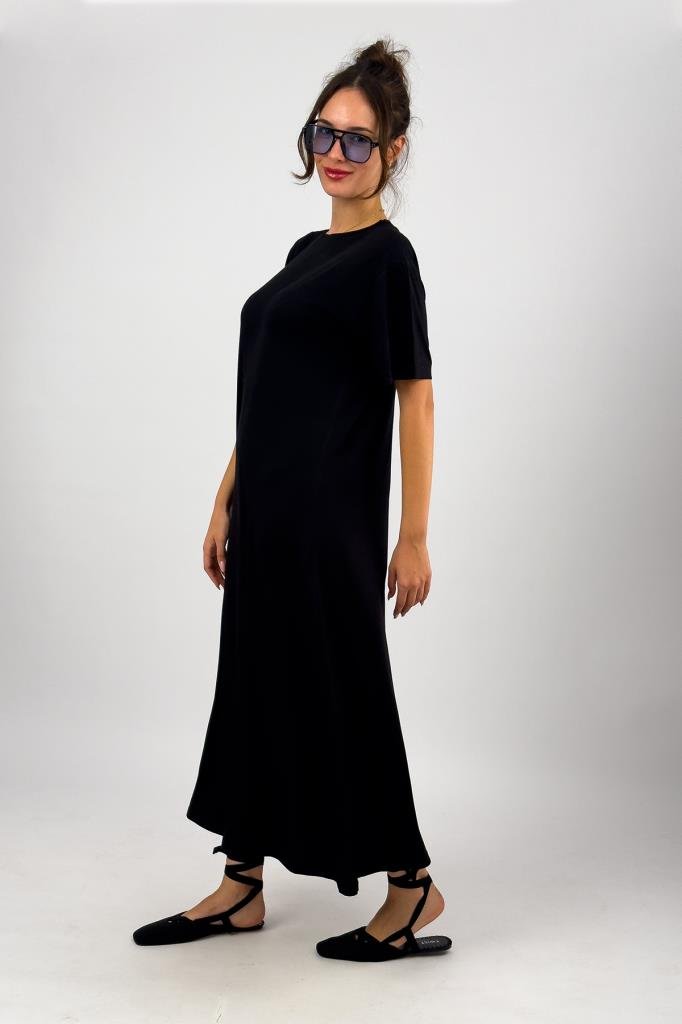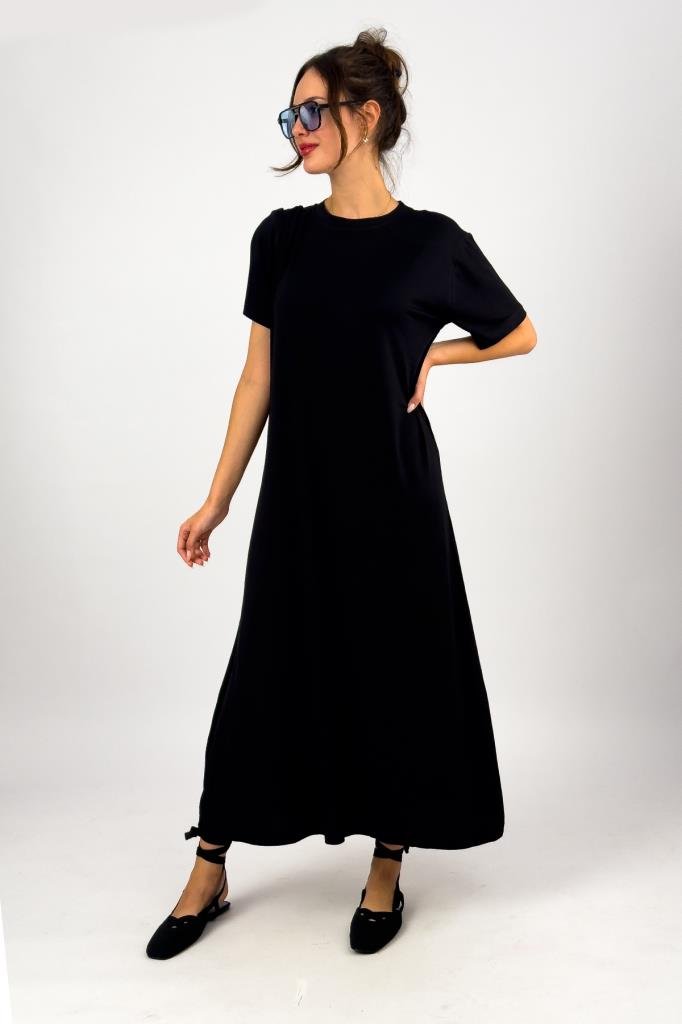 Kadın Yazlık Kısa Kollu Viskon Midi Boy Bisiklet Yaka Elbise SİYAH - S/M Kadın Yazlık Kısa Kollu Viskon Midi Boy Bisiklet Yaka Elbise SiyahSMksaklVskn