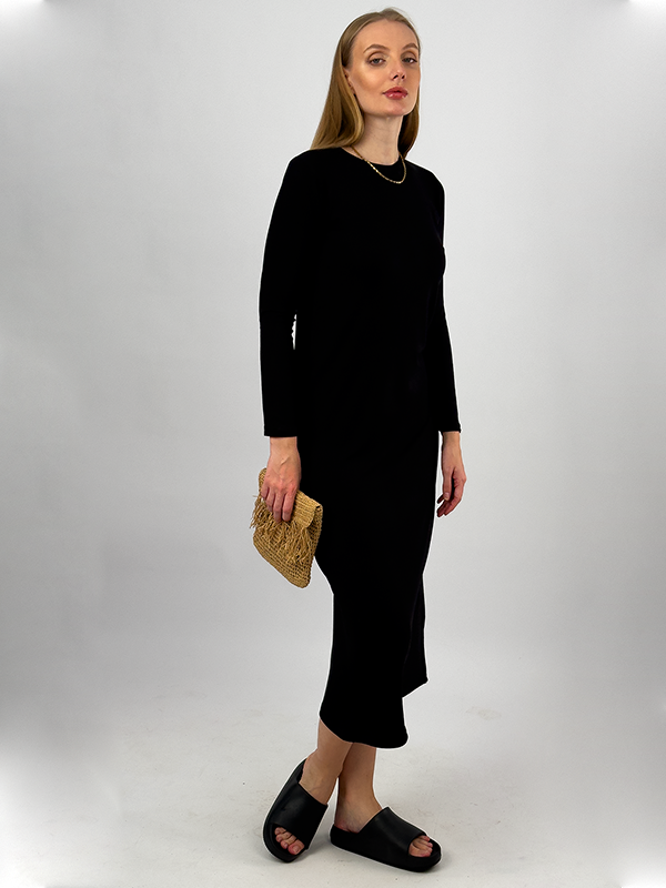 Kadın Yazlık Uzun Kollu Viskon Midi Boy Bisiklet Yaka Elbise SİYAH - 2XL/3XL Kadın Yazlık Uzun Kollu Viskon Midi Boy Bisiklet Yaka Elbise Syh2XL3XLuznKolVskElb