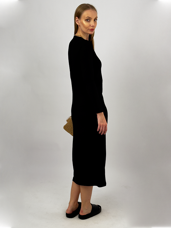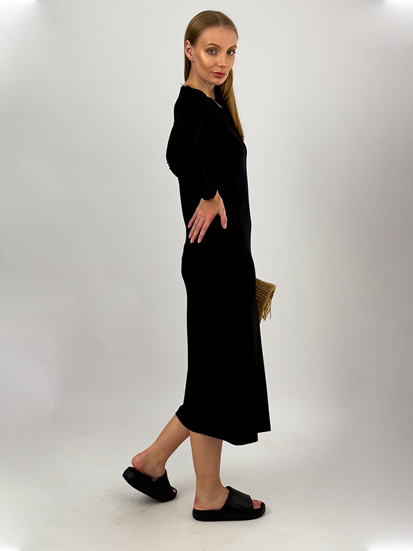 Kadın Yazlık Uzun Kollu Viskon Midi Boy Bisiklet Yaka Elbise SİYAH - 2XL/3XL