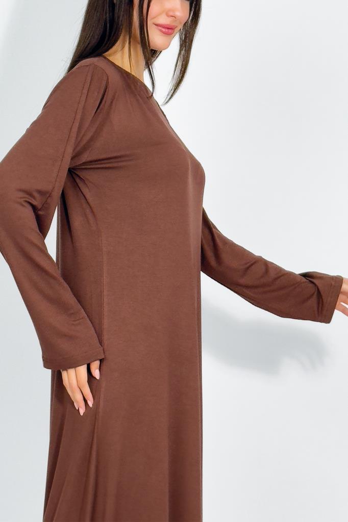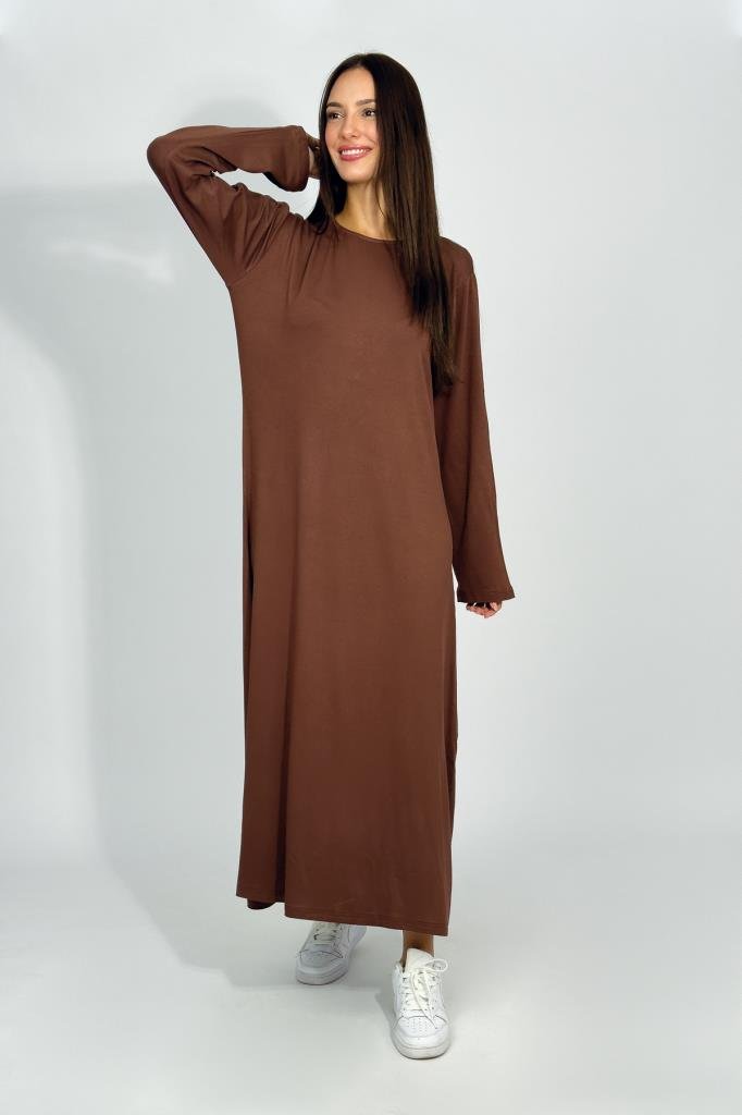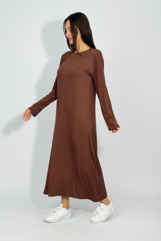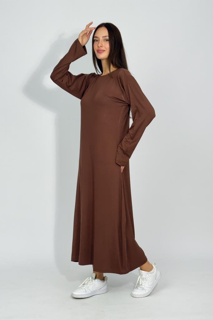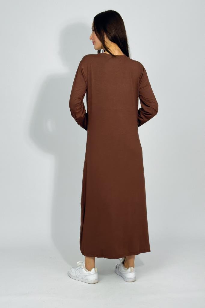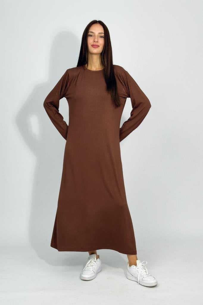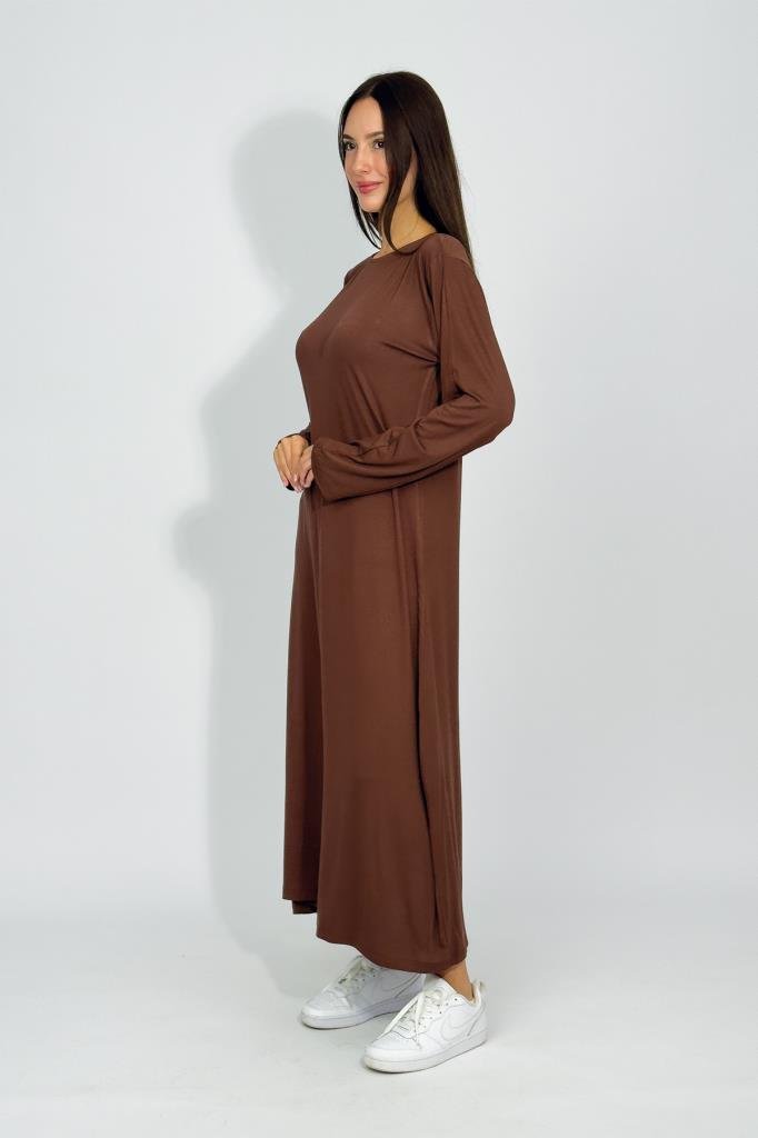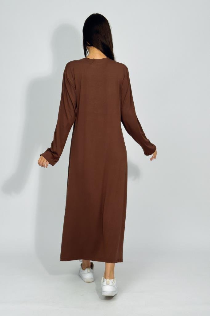 Kadın Yazlık Uzun Kollu Viskon Midi Boy Bisiklet Yaka Elbise Kahve - 2XL/3XL Kadın Yazlık Uzun Kollu Viskon Midi Boy Bisiklet Yaka Elbise BM.UzunKolViskon.Elbise-6203